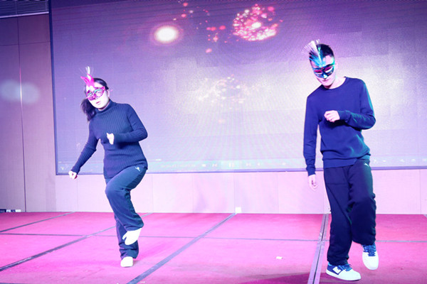 吴总致词完毕,银川分公司同事一首《欢聚一堂》闻乐声起,婉转优美琴笛合奏《月亮代表我的心》、别具一格的《广播体操》表演、财务部激情活泼的舞蹈,有幸得西安市建筑安装行业协会副会长张选会先生献唱《甘心情愿》和林芳家纺总经理魏西林先生献唱秦腔《三滴血》经典片段,同时又有西安市建筑安装行业协会会长志皓先生赠予我公司的一副“春华秋实”和天幕人一曲《相亲相爱一家人》,让整个晚会在一片热闹洋溢中慢慢落下尾声。