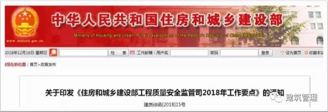 2018年3月,住房和城乡建设部工程质量安全监管司在其发布的《2018年工作要点》中关于第一条就提出“开展工程质量提升行动,推动建筑业质量变革”,明确要求: