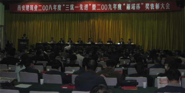 09年10月26日上午,二00九年度西安市建筑工程“雁塔杯”奖暨市优质工程颁奖大会在止园饭店大礼堂举行。由我公司负责幕墙建设的陈家庄1号、2号商住楼工程分别荣获二00九年度西安市建筑工程“雁塔杯”奖。