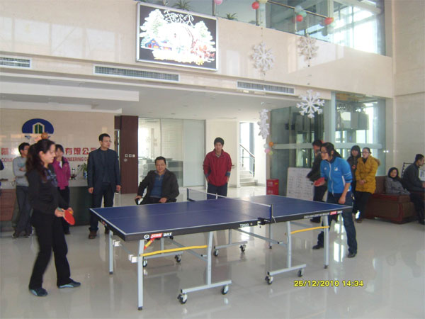 12月25日下午,我天幕公司在工会以及办公室人员的精心组织下,圣诞乒乓球赛正在举行,工程部副总朱峰为场内裁判。这次活动得到了广大员工的积极响应,大家踊跃报名,其中有30多人参赛。